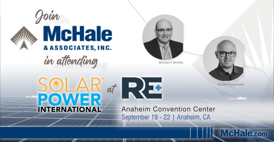 Our team at McHale & Associates, Inc. is excited to attend Solar Power International at RE+. The event is taking place this year at the Anaheim Convention Center in Anaheim, CA. Our team members Mike McHale and Karsten Kopperstad will be in attendance at the event – we look forward to seeing you there, too!